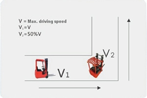 5、彎道控制技術(shù):叉車轉(zhuǎn)彎時(shí),彎道控制技術(shù)會自動降低叉車行駛速度,將動態(tài)穩(wěn)定安全系統(tǒng)與重心極低的特點(diǎn)結(jié)合,有效保護(hù)貨物和操作員的安全。