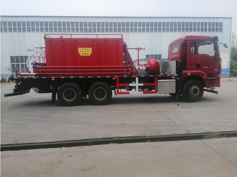 2020年5月28日,公司生產的樣車LGC5250TJC35型洗井車(又名沖砂洗井車)正在公告申請,預計在下個月公告完畢。該車采用陜汽SX1259MC4C1/6×4汽車底盤(國Ⅵ排放,發(fā)動機功率375hP),上裝有三缸柱塞泵、流體處理罐、高壓降壓系統(tǒng)、除砂系統(tǒng)等專用部件,適于油田注水井和油井的沖砂洗井作業(yè),最高工作壓力35MPa,最大工作排量50m3/h。